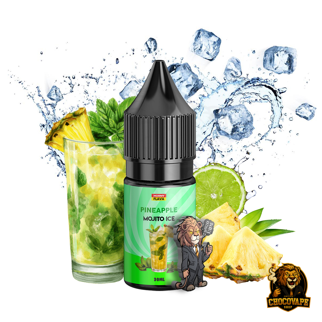 Horny Flava Mojito Pineapple Ice Salt Nic 30ml یک سالت میوهای-کوکتلی با حالوهوای استوایی است. در این ترکیب، شیرینی طبیعی و شفاف آناناس پایه اصلی طعم را میسازد و در کنار آن، لیموی تازه و نعناع لطیف موهیتو حس طراوت و سبکی ایجاد میکند.